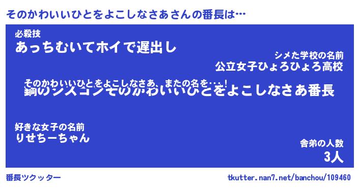 | 意味不明あだ名 | 『ペロリンそのかわいいひとをよこしなさあ』 |