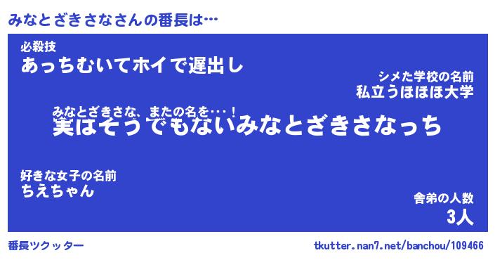 | ヒーロー風カッコイイあだ名 | 『スーパーミナトザキサナ』 |