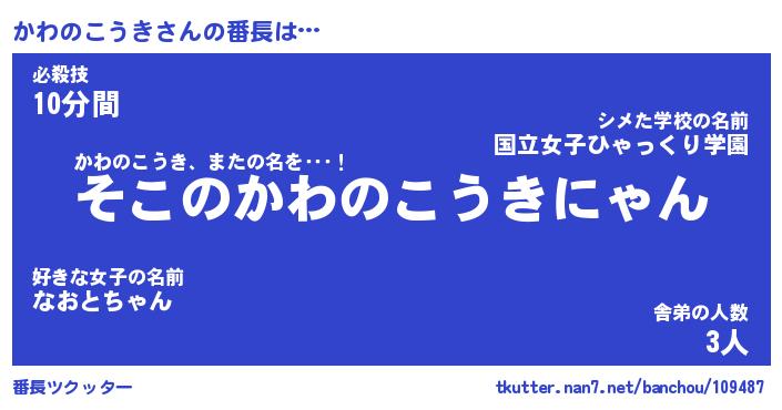 | 2回繰り返すあだ名 | 『かわかわ』『かかわわ』『おたおた』 |