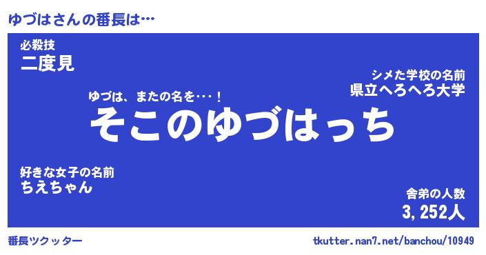 | ピコ太郎風あだ名 | 『ユコ六郎』『ピユ八郎』『ユヅ次郎』 |