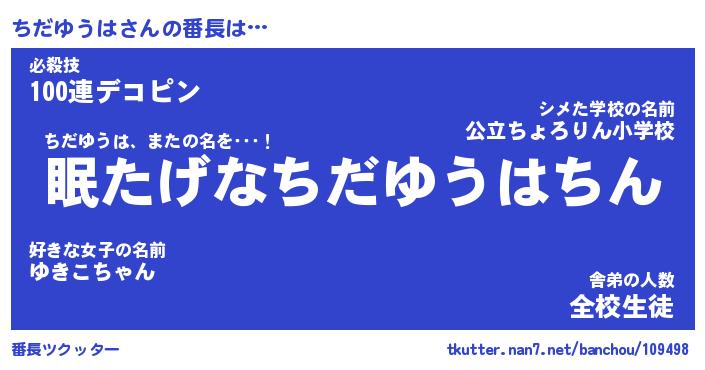 | 伝説のあだ名 | 『封印されしスナイパーちだゆうは』 |