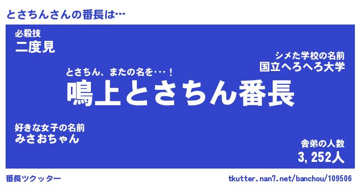 | ピコ太郎風あだ名 | 『トコ三郎』『ピト十郎』『トサ史郎』 |