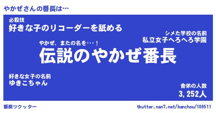 | 肩書あだ名 | 『やかぜ御曹司』『やかぜ国家主席』 |