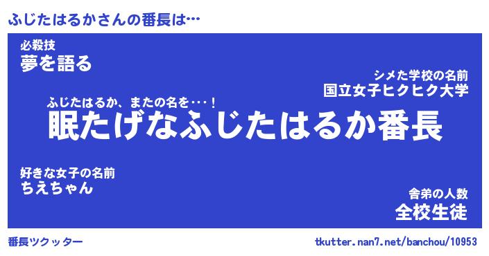 | 伝説のあだ名 | 『封印されしスナイパーふじたはるか』 |