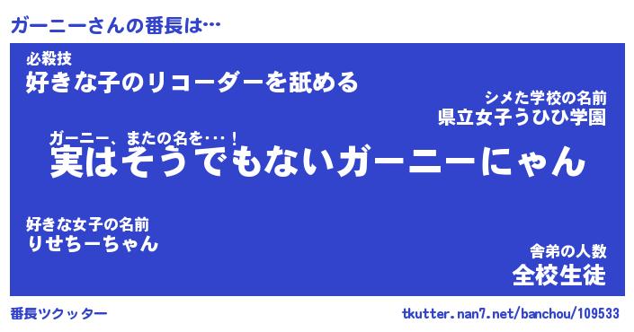 | 意味不明あだ名 | 『ペロリンガーニー』『永久保存ガーニー』 |
