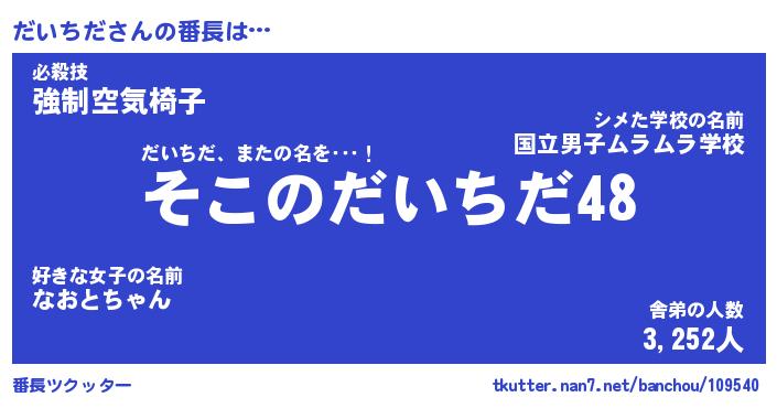 | 男性向けラノベタイトル風あだ名 | 『だいちだの憂鬱』 |