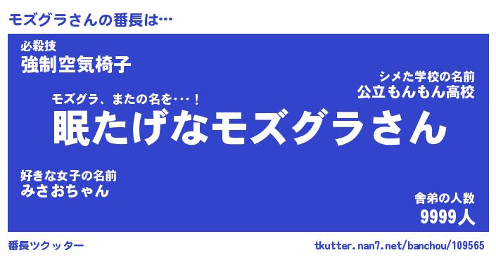 | 意味不明あだ名 | 『ペロリンモズグラ』『永久保存モズグラ』 |
