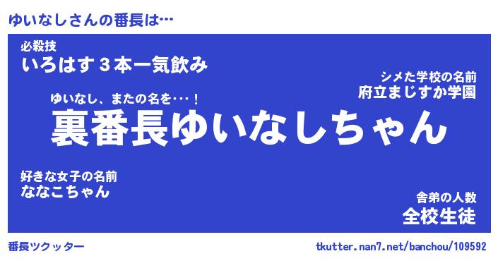 | ヒーロー風カッコイイあだ名 | 『スーパーユイナシ』『暗黒騎士ユイ』 |