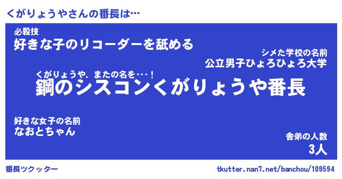 | 肩書あだ名 | 『くがりょうや店長』 |