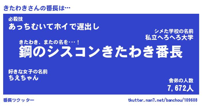| 意味不明あだ名 | 『ペロリンきたわき』『永久保存きたわき』 |