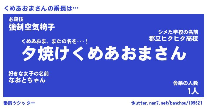 | 肩書あだ名 | 『くめあおま社長令嬢』『くめあおま団長』 |