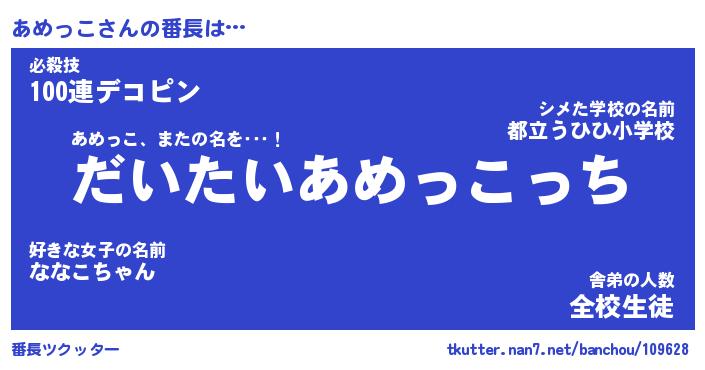 | 欧米人風あだ名 | 『マイケルあめっこ』『ウサインあめっこ』 |