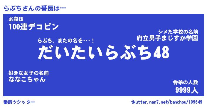 | ヒーロー風カッコイイあだ名 | 『スーパーラブチ』『ウルトラらぶちマン』 |