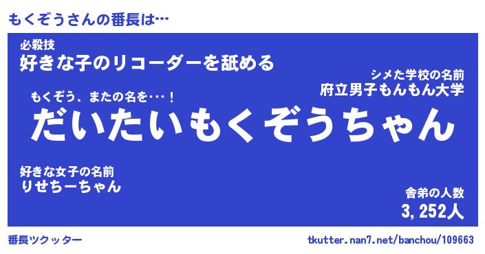 | 欧米人風あだ名 | 『マイケルもくぞう』『ウサインもくぞう』 |