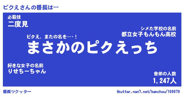 | 意味不明あだ名 | 『ペロリンピクえ』『ピクえフォーエバー』 |