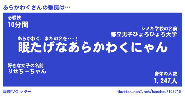 | 肩書あだ名 | 『あらかわく店長』『あらかわく総理大臣』 |