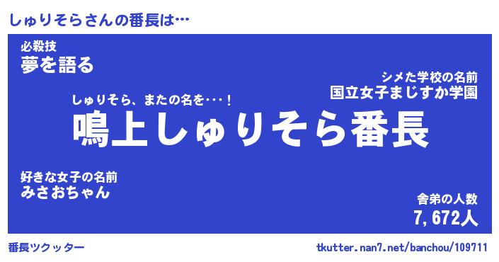 | ヒーロー風カッコイイあだ名 | 『スーパーシュリソラ』『銀牙騎士シュ』 |