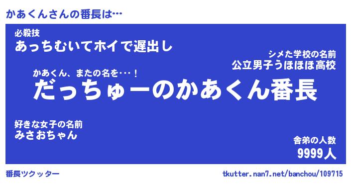 | 意味不明あだ名 | 『ペロリンかあくん』『永久保存かあくん』 |