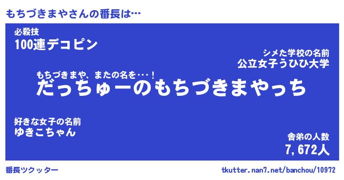 | ヘコむあだ名 | 『もちふぇ~』『牛乳』『もち太郎』 |