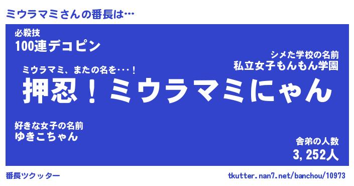 | 肩書あだ名 | 『ミウラマミ社長』『ミウラマミ大統領』 |