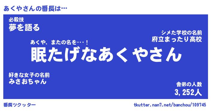 | 伝説のあだ名 | 『封印されしスナイパーあくや』 |