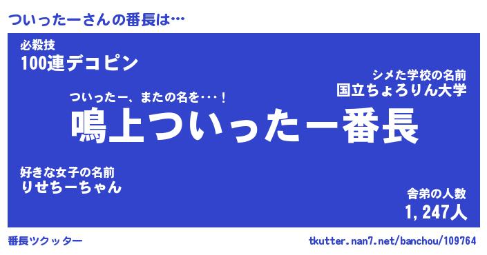 | 肩書あだ名 | 『ついったー御曹司』『ついったー団長』 |