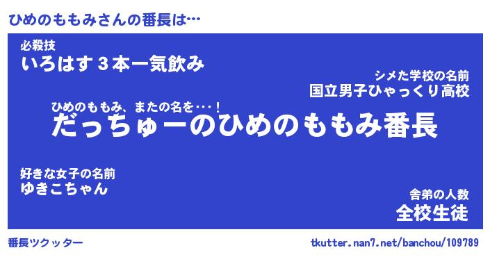 | 肩書あだ名 | 『ひめのももみ社長』『ひめのももみ教頭』 |
