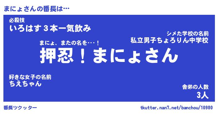 | 意味不明あだ名 | 『ペロリンまにょ』『まにょフォーエバー』 |