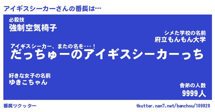 | 欧米人風あだ名 | 『マイケルアイギスシーカー』 |