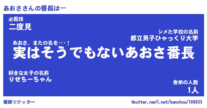 | 意味不明あだ名 | 『ペロリンあおさ』『あおさフォーエバー』 |