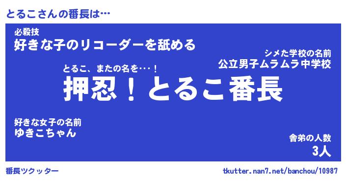 | 肩書あだ名 | 『とるこ店長』『とるこ総理大臣』 |