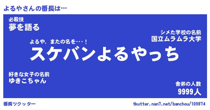 | ポケモン風あだ名 | 『ヨルチュウ』『ヨルヤダネ』 |