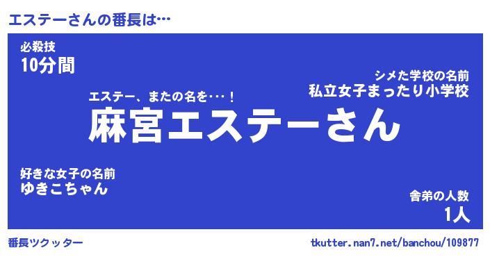 | 意味不明あだ名 | 『ペロリンエステー』『永久保存エステー』 |