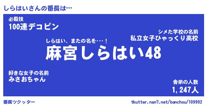 | 伝説のあだ名 | 『不死鳥のスナイパーしらはい』 |