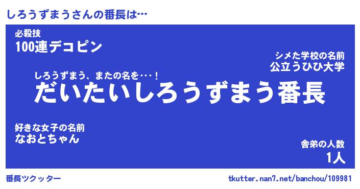 | 2回繰り返すあだ名 | 『しろしろ』『ししろろ』『なあなあ』 |