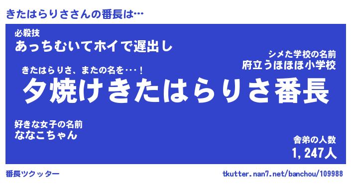 | ヒーロー風カッコイイあだ名 | 『スーパーキタハラリサ』『銀牙騎士キタ』 |