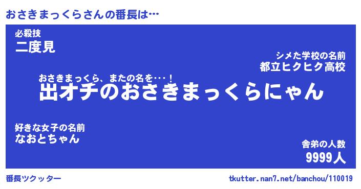 | ピコ太郎風あだ名 | 『オコ次郎』『ピオ一郎』『オサ六郎』 |