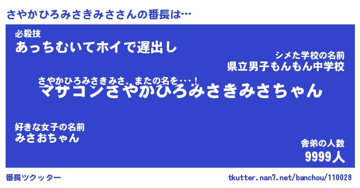 | 伝説のあだ名 | 『封印されしスナイパーさやかひろみさきみさ』 |