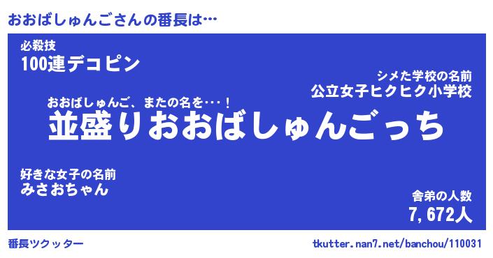 | 意味不明あだ名 | 『ペロリンおおばしゅんご』 |