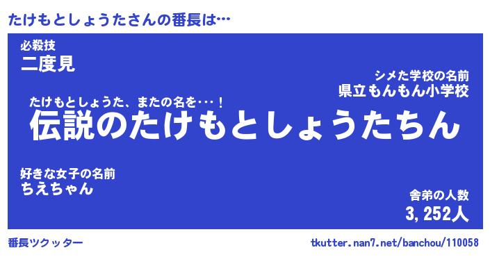 | 2回繰り返すあだ名 | 『たけたけ』『たたけけ』『ぬぷぬぷ』 |