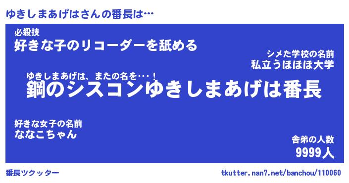 | ヘコむあだ名 | 『ゆきにゅー』『酢こんぶ』『ゆきお』 |