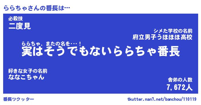 | ヘコむあだ名 | 『ららにゅー』『酢こんぶ』『ららお』 |