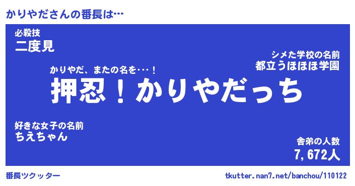 | 意味不明あだ名 | 『ペロリンかりやだ』『永久保存かりやだ』 |
