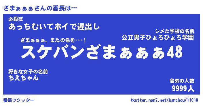 | ポケモン風あだ名 | 『ザマチュウ』『ザマァダネ』 |