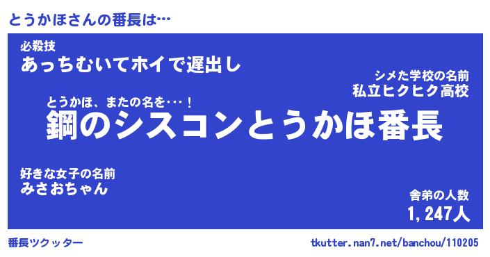 | ヒーロー風カッコイイあだ名 | 『スーパートウカホ』『銀牙騎士トウ』 |