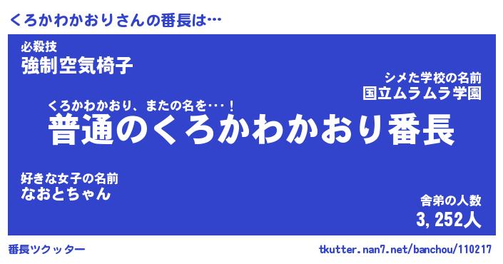| ヒーロー風カッコイイあだ名 | 『スーパークロカワカオリ』 |