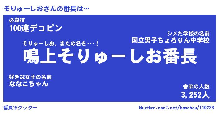 | 肩書あだ名 | 『そりゅーしお店長』『そりゅーしお団長』 |
