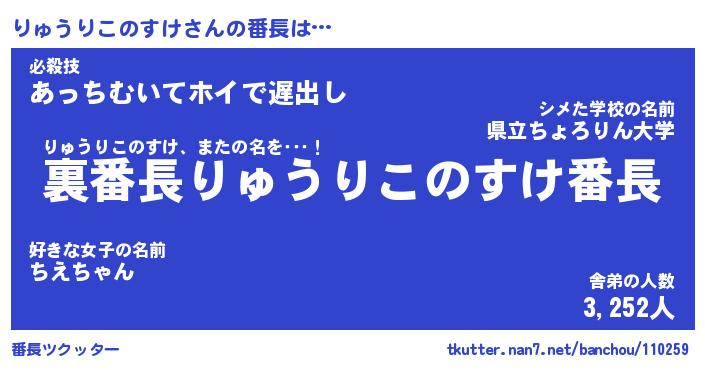 | 2回繰り返すあだ名 | 『りゅりゅ』『りりゅゅ』『かんかん』 |