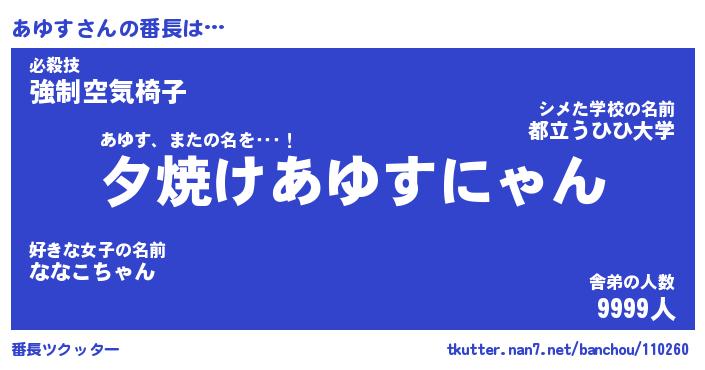 | 意味不明あだ名 | 『ペロリンあゆす』『あゆすフォーエバー』 |