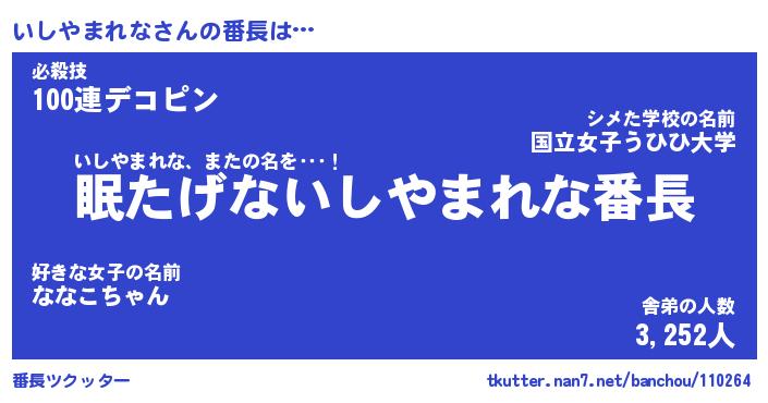 | 伝説のあだ名 | 『封印されしスナイパーいしやまれな』 |